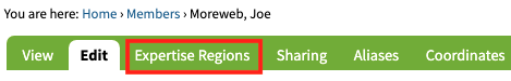 Expertise Regions tab for profile.