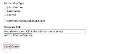 Image of Organization Partnership Type and Save Button for How to Add an Organization tutorial.