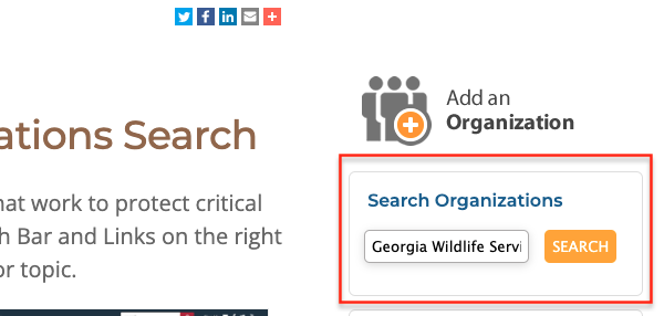 Image of the Search Organizations portlet for How to Add an Organization tutorial.