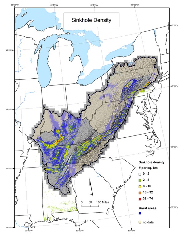 Overview maps for the Classification and Mapping of Cave and Karst Resources within the Appalachian region.