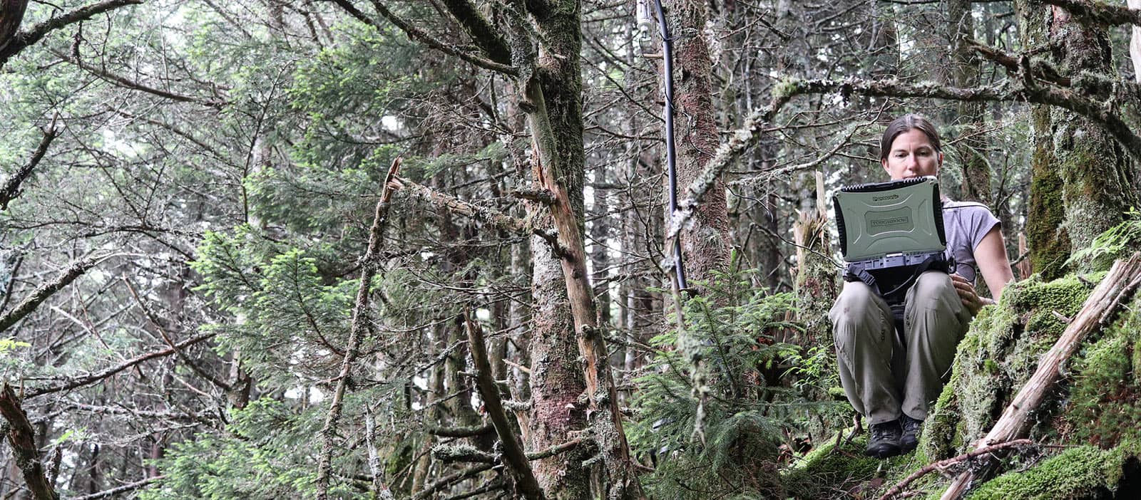 Sue Cameron is the Service expert for this species, and she recently visited Mount Mitchell State Park to search for the spider, and download humidity and temperature from data loggers that are continually recording the environmental data that may guide future management efforts.